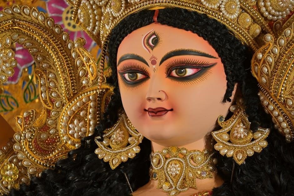 However, detailed meanings are sometimes limited within the PDF itself. Devotees often supplement their study with online resources that provide verse-by-verse explanations in Telugu and English. These interpretations illuminate the profound symbolism and spiritual significance embedded within each line, enhancing the devotional experience and unlocking the Stotram’s full potential for blessings.